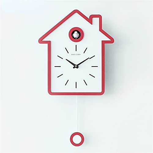 Specification: Eenvoudige en moderne koekoek wandklok woonkamer studie decoratie klokmuur (Color : Brilliant Red)