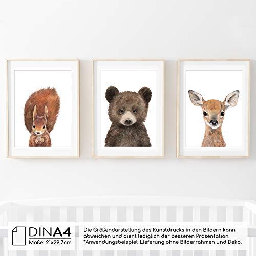 Frechdax® Set van 3 afbeeldingen kinderkamer decoratie jongen meisjes – DIN A4 poster dieren – wandafbeeldingen…