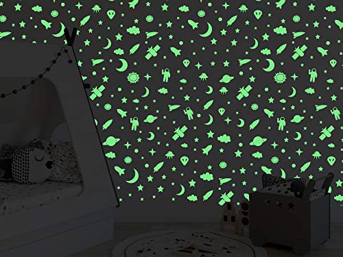 Glow in the dark sterren, maan en ruimte muurstickers voor kinderen, kinderkamer, kinderkamer, kinderkamer, kinderkamer…