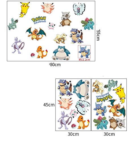 Specification: Kibi Pokemon stickers,Pikachu muurstickers voor kinderen, muurstickers Pokémon, Pikachu muurdecoratie voor kinderkamer…