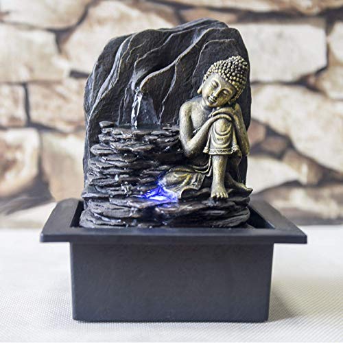 Een fontein Zen en Feng Shui: esthetisch en stil, deze verlichte en met een presentatie van Boeddha in een natuurlijke decoratie versierd, brengt een vleugje exotiek en zeesituatie in je huis.