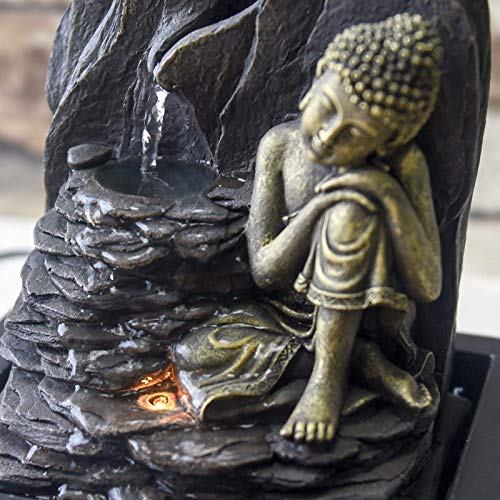 De Saoun Boeddha fontein van Zen’Light biedt een mooi oppervlak voor het afvoeren van water met een reliëf muur. De ledverlichting met kleurverandering benadrukt deze waterwand en de ontspannende beweging. De Boeddha-figuur, die de wastafel siert en de harmonieuze vorm van het natuurlijke decor vormgegeven, maken dit product tot een zen- en Feng Shui-decoratief object. Met zijn mooie afwerking past deze led-fontein perfect in elk soort sfeer: traditioneel huis, Aziatische decoratie, serre met een natuurlijke sfeer enz.
