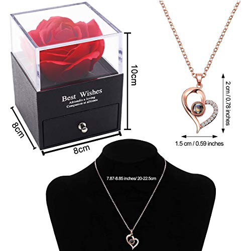 I Love You Ketting 100 Talen YUESEN Red Rose Gift Box Sieraden Doos Voor altijd Rose Nooit Verdorde Bloem Romantische…
