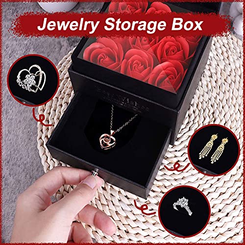 JOLIGAEA Geconserveerde echte roos met I Love You Ketting 100 talen sieraden geschenkdoos, handgemaakte eeuwige echte…