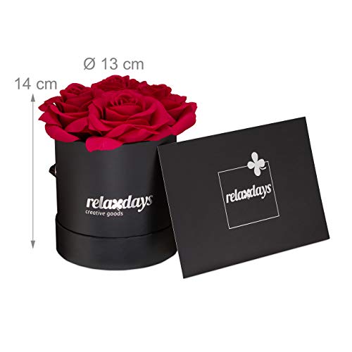 Specification: Relaxdays Rozenbox rond, 4 rozen, stabiele bloemenbox zwart, 10 jaar houdbaar, cadeau-idee, decoratieve bloemendoos…