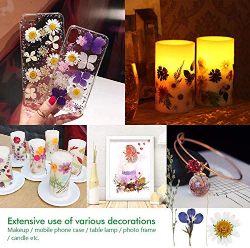 Mooie versiering: kleurrijke echte gedroogde bloemen en bladeren kunnen helpen om herinneringen aan het groeiseizoen te behouden, die flexibel kunnen worden ingelijst of aangebracht, mooie versieringen om notitiekaarten te versieren, schrijfpapier, boekhoezen, bladwijzers, papiergewichten, kaarsen, albumframe en meer, creëer gewoon je eigen kunstwerk door je fantasie te wekken