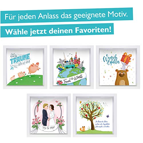 GLÜCKSWOLKE – Spaarpot, met motief, spaarvarken, 3D-fotolijst om te vullen, geldgeschenken, verpakking voor auto, huis…