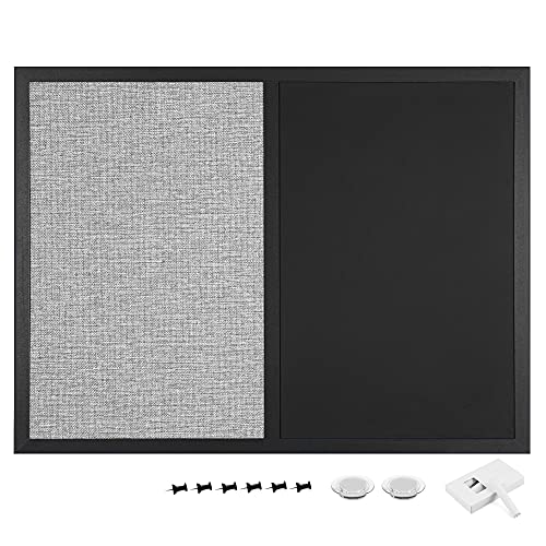 Dit multifunctionele combinatiebord van Navaris bestaat uit een stoffen prikbord en een magnetisch krijtbord. Je kunt er dus zowel dingen opschrijven als ophangen met magneetjes en punaises.