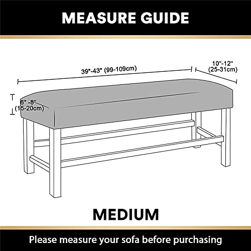 UNIVERSELE AFMETINGEN: Onze elastische bankhoes is geschikt voor de meeste soorten rugloze en armloze banken. Medium Maat is geschikt voor zitbank lengte 99-109 cm, breedte 25-31 cm, dikte 15-20 cm. Groot formaat is geschikt voor zitbank lengte 115-145 cm, breedte 35-51 cm, dikte 15-20 cm. Meet de maat van de stoel voordat u deze koopt.