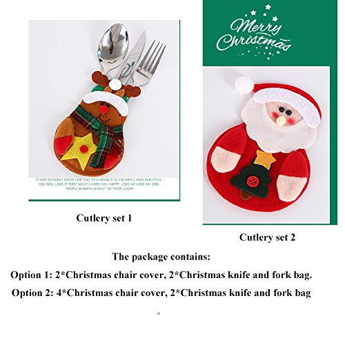 Kerststoelhoezen Set van 4/6, Kerstmes en Vorktas Eetkamerstoel Kussenovertrekken Bureaustoelhoes Xmas Stoelrugbekleding…
