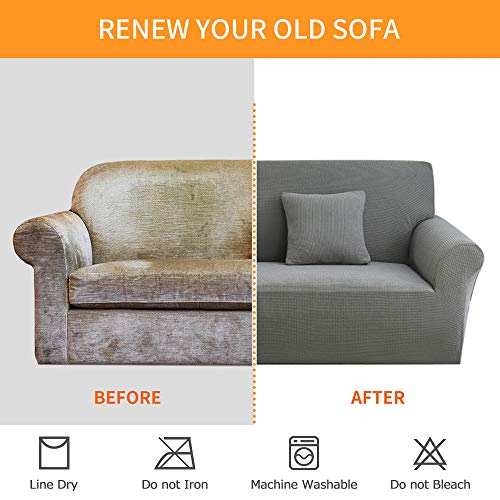 Specification: Ihoming Jacquard Gebreide Slipcover Stretch Sofa Cover voor Woonkamer Spandex Stof Meubelbeschermer (3 Zits, Grijs)