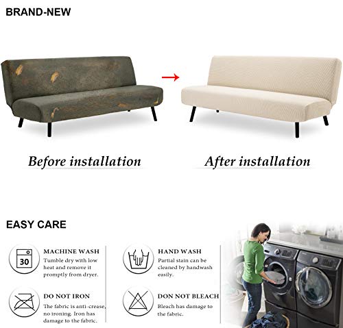 ✔ PERFECTE FIT: onze armloze bankhoezen zijn one-size-fits-most. Rekbaar genoeg om te passen op de lengte van de slaapbank van 165-216cm. Meet uw sofa volgens onze maattabel voordat u bestelt.