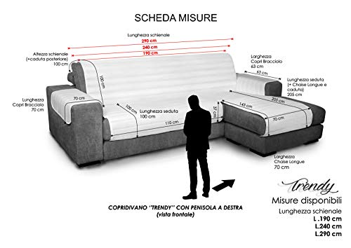 Trendy bankovertrek met chaise-longue aan de rechterkant, verkrijgbaar in vele verschillende kleuren en in drie verschillende maten;