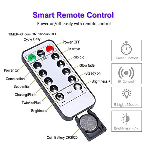 [8 Verlichtingsmodi & Timer-functie]: U kunt eenvoudig de afstandsbediening gebruiken om de lichten in of uit te schakelen, de helderheid aan te passen, de timer automatisch in- en uitschakelen, modi van combinatie naar Slo-glo om te knipperen naar stabiel aan, enz. Kan romantische, zachte, gezellige sfeer creëren in alle situatie.
