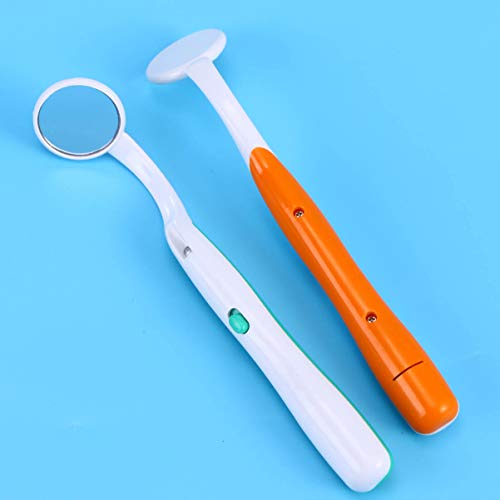 2 x orale tandspiegel Tand inspectiespiegel Plastic mondspiegel Tandarts Gereedschapsset met LED-licht voor tandheelkundige zorg (groen en oranje)