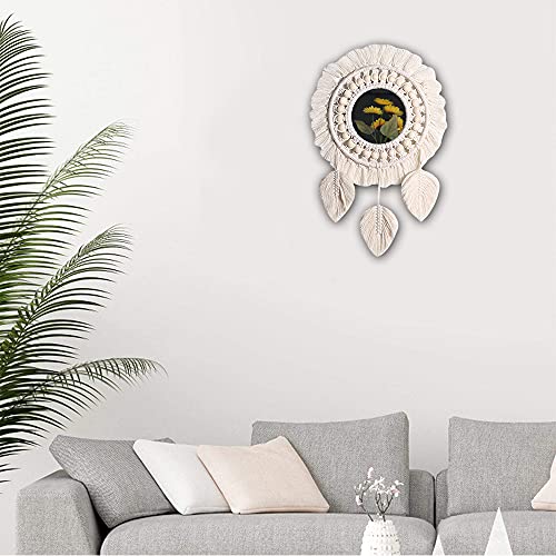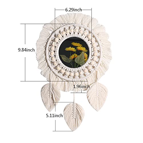 Hoge kwaliteit: decor spiegel met macrame franje, gemaakt van katoen, houten kralen en spiegel, duurzaam, slijtvast, zeer delicaat en praktisch. Prachtig weefprocesontwerp, elegant en chic.
