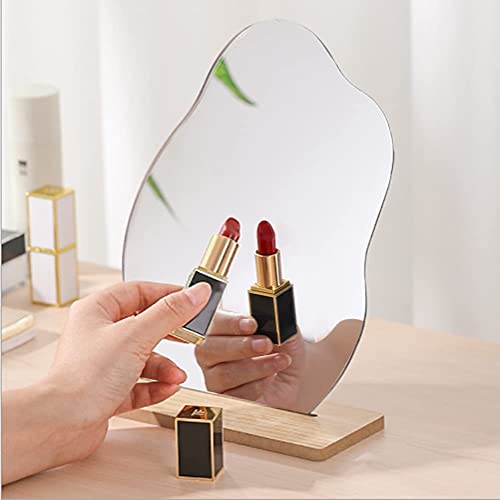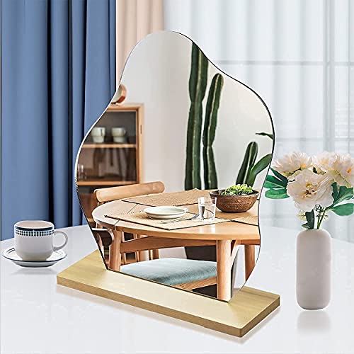 Specification: Acryl make-up spiegel frameloze decoratieve ijdelheid tafel spiegel make-up onregelmatige vorm met houten voet voor…
