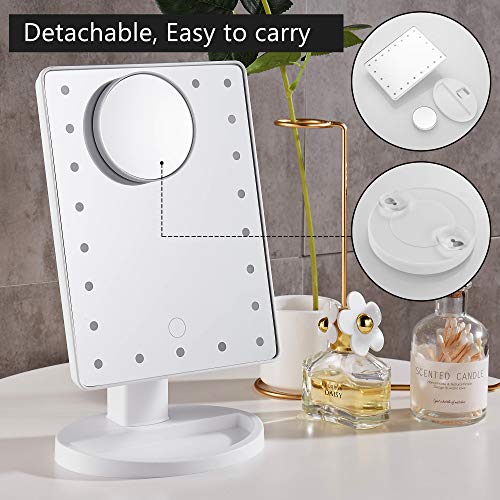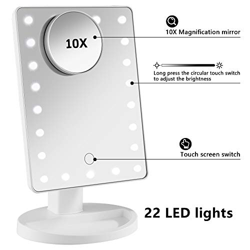 DUFU Make-up Spiegel LED 22 LED-verlichting Touchscreen-schakelaar Slimme Dimmer Draagbare Make-upspiegel 10X…