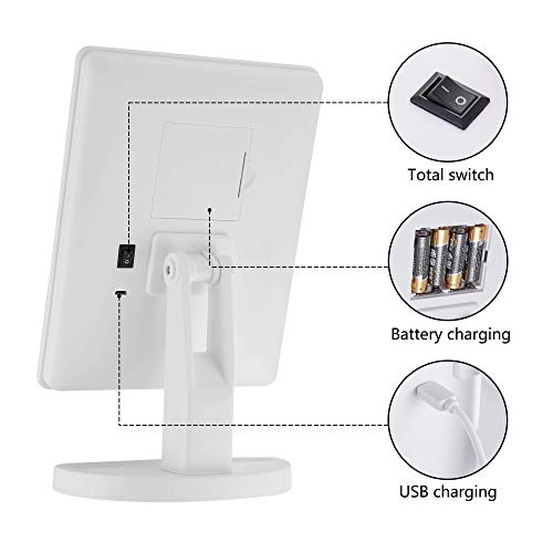 Opladen via USB of Batterij 2 Opties: Opladen door 4 AA-batterijen (niet inbegrepen) of USB-kabel (USB-kabel inbegrepen), de spiegel kan zelf geen energie opslaan. Veilig en snel, lange gebruiksduur.