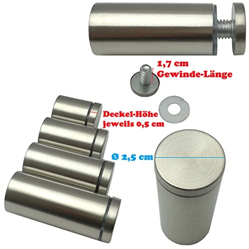 Specification: 4x spiegelhouder bevestiging roestvrij staal geborsteld – afstandhouders voor glas, acrylglas, afbeeldingen of spiegels…
